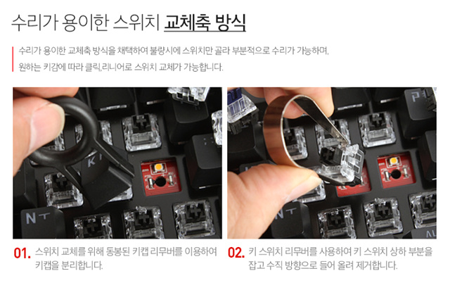 키캡의 교체가 매우 쉽고 간편합니다. 설명서를 보고 바로 따라할 수 있을 정도입니다.