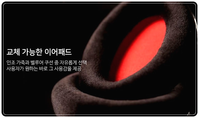 또한 이어피스는 가죽과 패브릭 두 종류를 제공하며 탈부착이 가능하고 세척이 편합니다. 가죽패드를 사용하면 차음성이 뛰어나 외부소리를 잘 차단해주므로 참고하시면 되겠습니다.