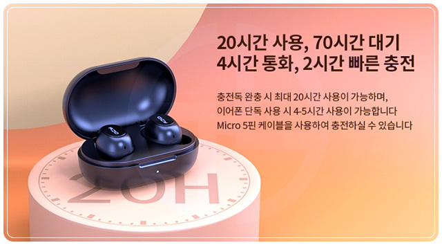 QCY T9S는 마이크로 5핀으로 충전합니다.
